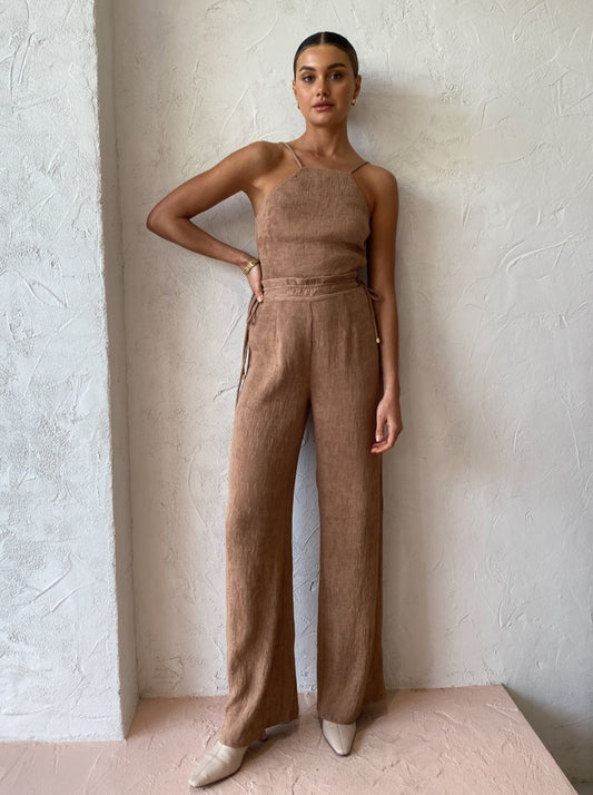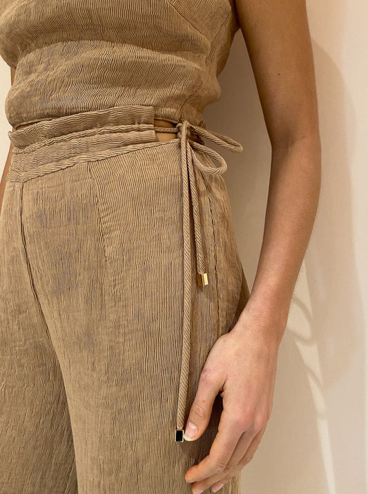 Sitting high on the waist with a drawcord waistband and workable side ties, the Estelle are a lightweight crafted from a Polyester fabrication in Latte.