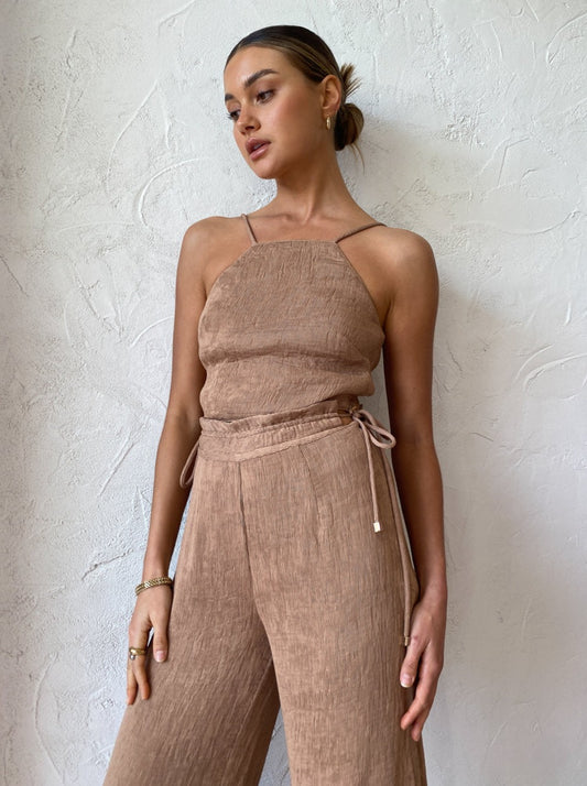 Complete the set with the matching By Nicola Estelle Pleated Top in Latte and the Elka Collective Annie Jacket in Cream layered over the top. Accessorise with the Alias Mae Lani Boots in CreamPorter Heritage Bracelet in Gold and Porter Pong Ring in Gold