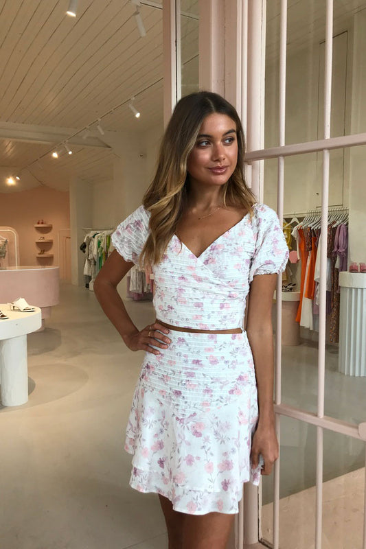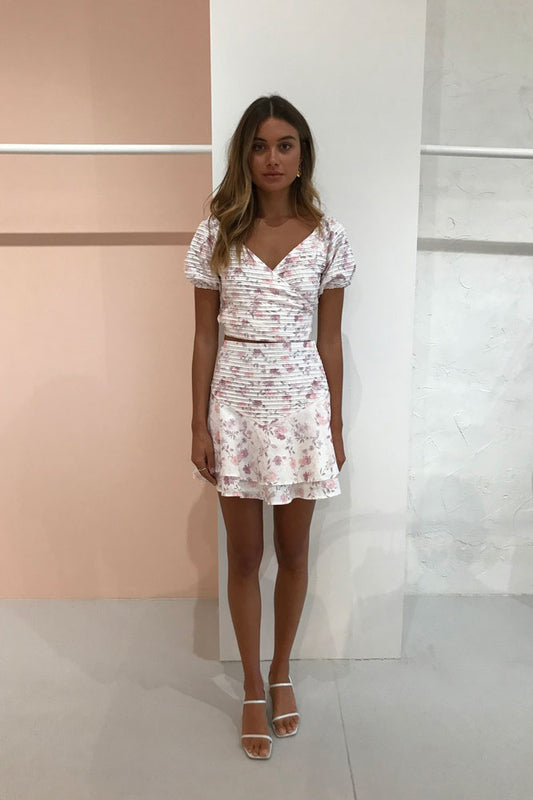 The exclusive By Nicola Gi Gi skirt features panelled detailing, frill on hem and invisible zip for entry. The Gi Gi set features an exclusive floral print in sorbet inspired hues, perfect for the warmer months ahead.