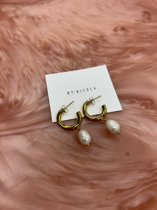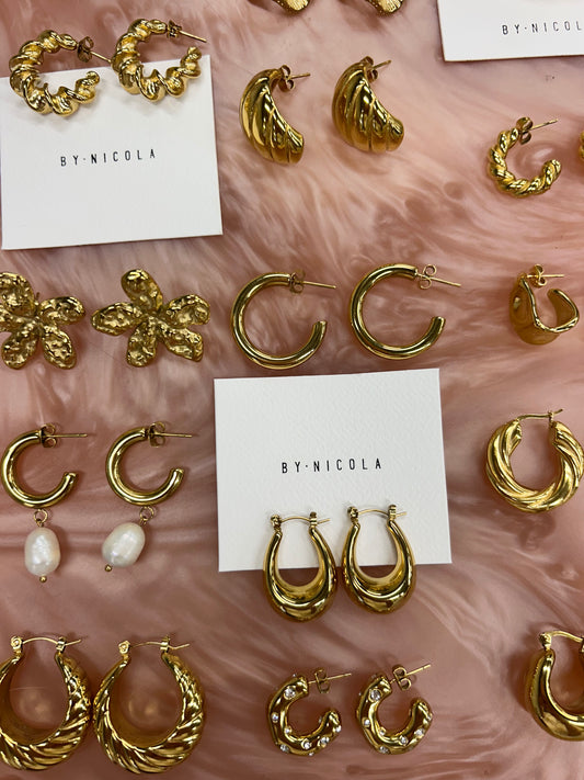 The Hazel Earrings from By Nicola are made from stainless steel and 18k gold plated. Waterproof, tarnish resistant and come packaged in a small gift pouch.