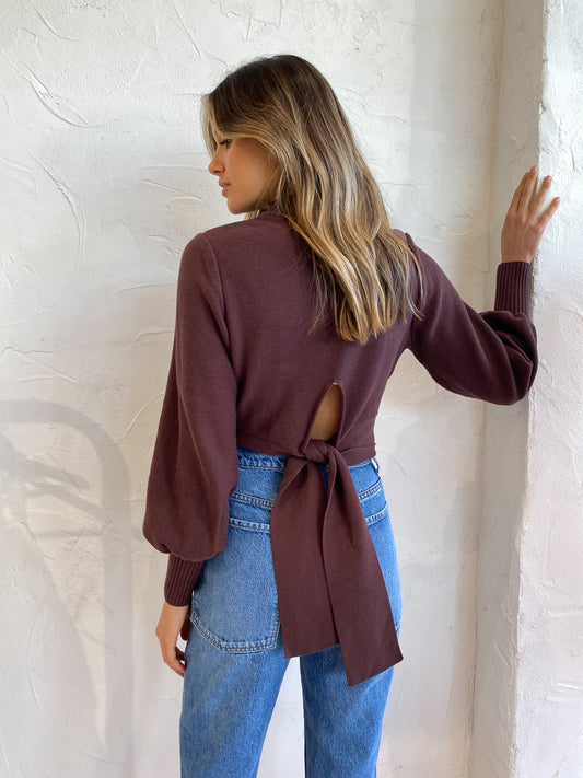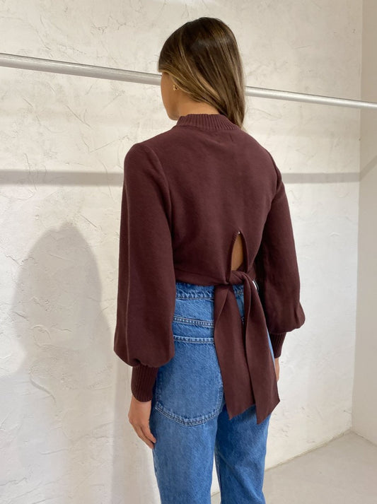 A Coco & Lola EXCLUSIVE, the Portia Billow Sleeve Jumper in Chocolate from By Nicola has us falling for delectable knits with unexpected tie detailing.