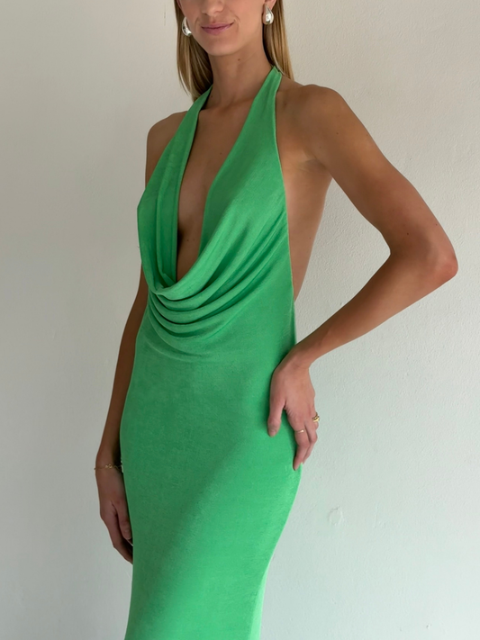 The By Nicola Riley Maxi Dress in Green is made from a soft stretchy material that is perfect leading us into the warmer months for formal events.
