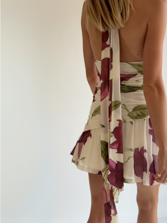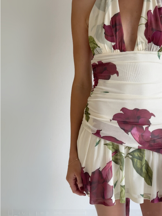 The By Nicola Violette Mini Dress in Bordeaux Floral is a fresh take on a classic silhouette. Featuring an exclusive floral print, this piece is equal parts effortless and polished.