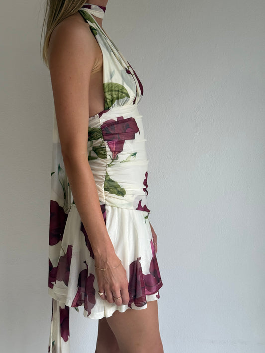 By Nicola Violette Mini Dress in Bordeaux Floral