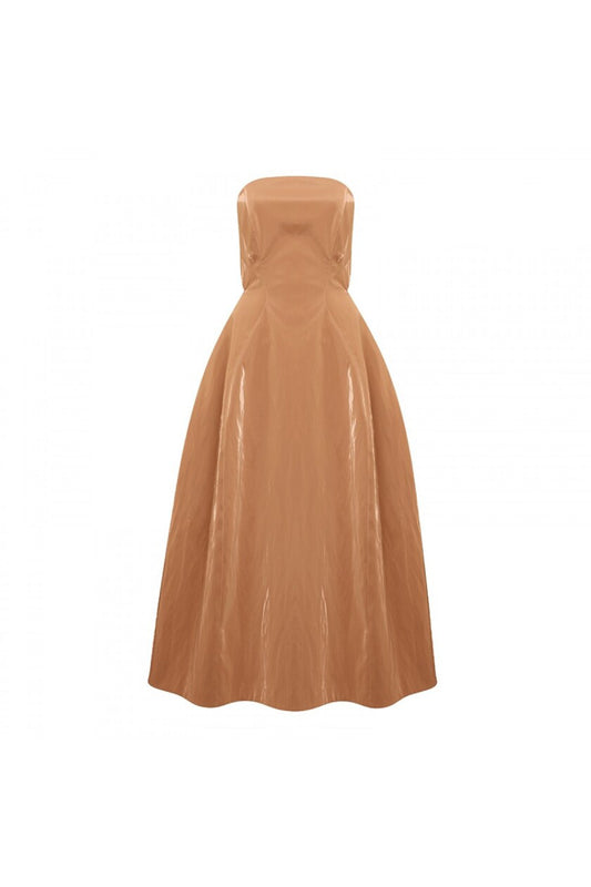 Strapless midi dress with cocoon petal shaped skirt