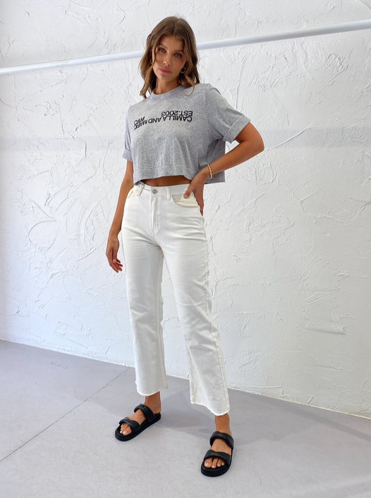 Camilla and Marc Amelia Crop Logo Tee in Grey Marle