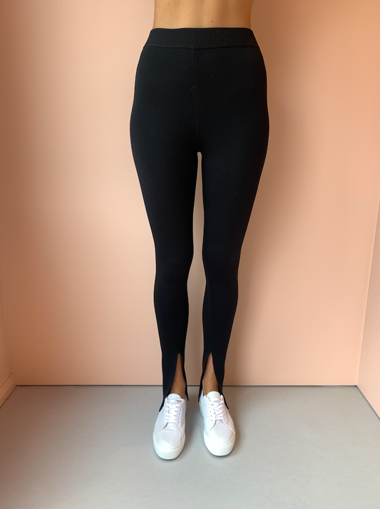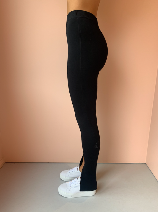 The Clements Pant in Black by CAMILLA AND MARC is a slim fit knit pant designed with an elongated leg.