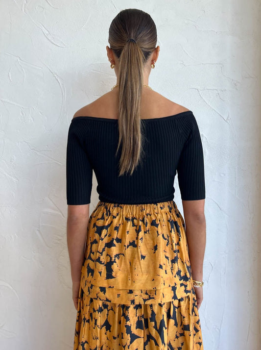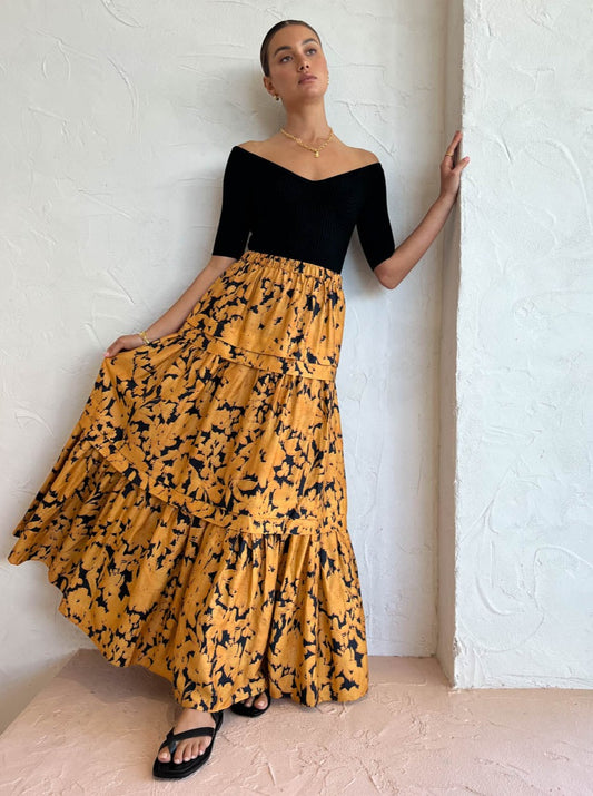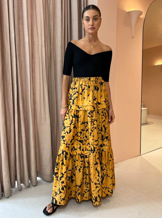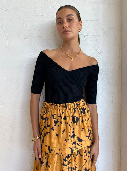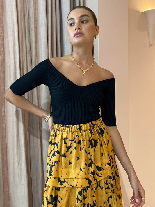 For workwear functions to wedding celebrations, complete the Coco look with the Acler Leader Skirt in Midnight Garden, the Alias Mae Baz Heel in Black, Amber Sceats Coco Necklace in Gold and Porter Baby Link Bracelet in Gold