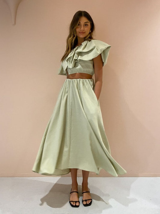 Loved for its modern voluminous structured ruffled detail, the Dimaro will bring a touch of haute couture fashion to your day to night style occasions.