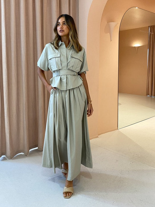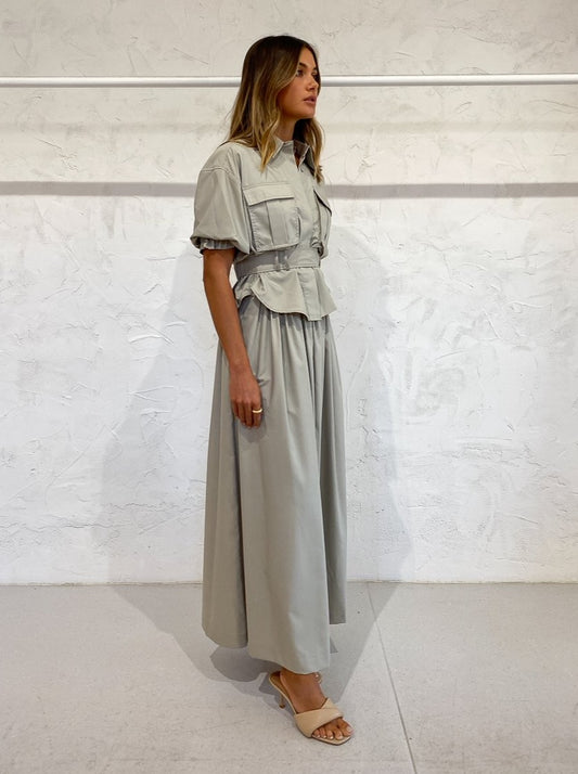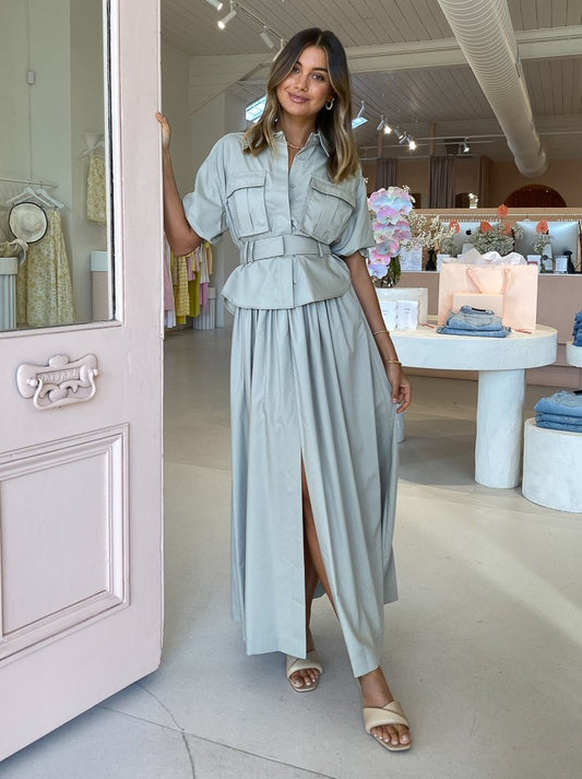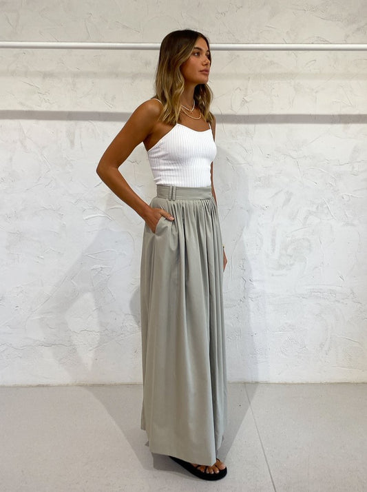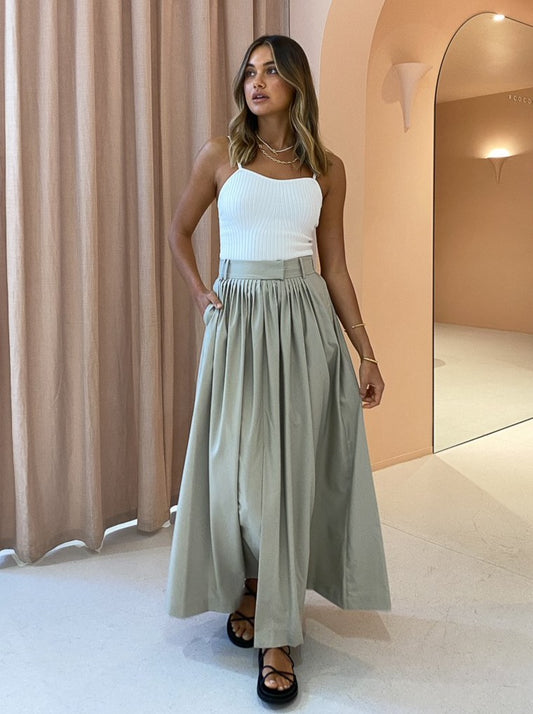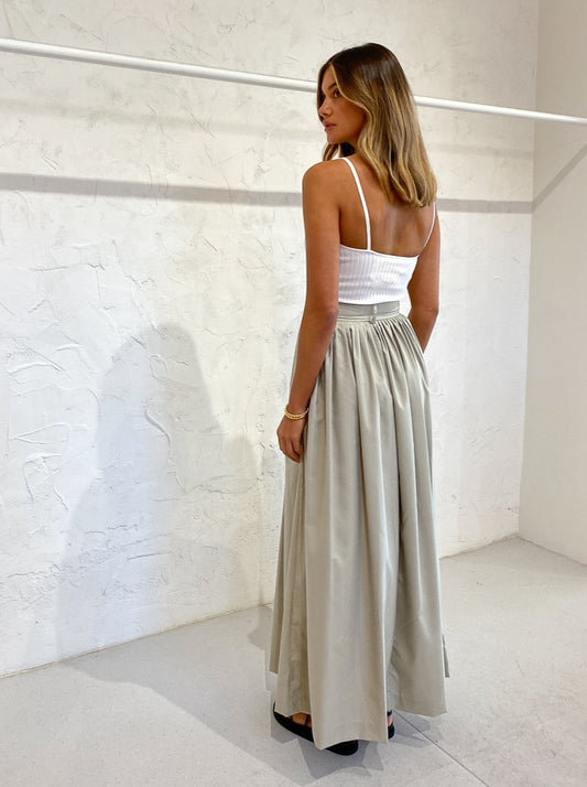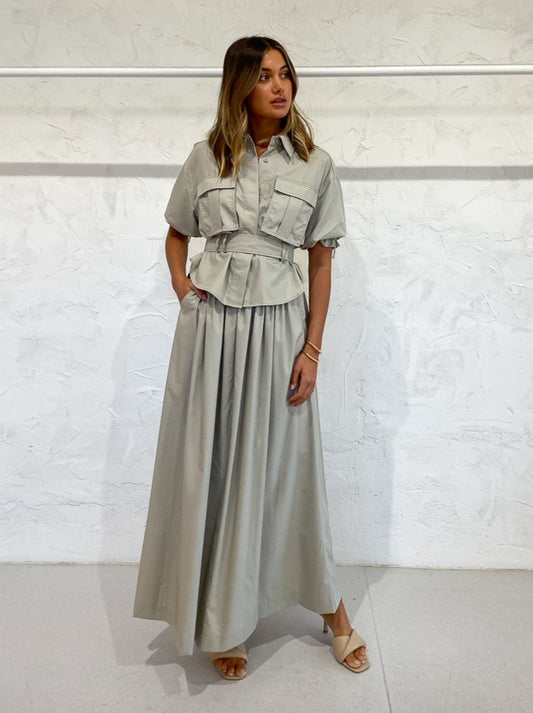 The Camilla and Marc Frost Pleat Maxi Skirt in Oyster is the safari-inspired pleated maxi style to add to your capsule wardrobe.