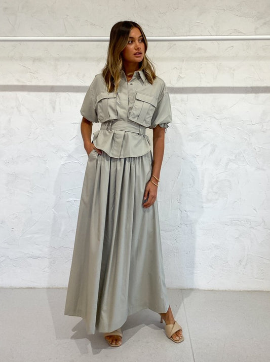 Coco Styling Tip: For an effortlessly elevated set you can't go past the Camilla and Marc Frost Pleat Maxi Skirt in Oyster.