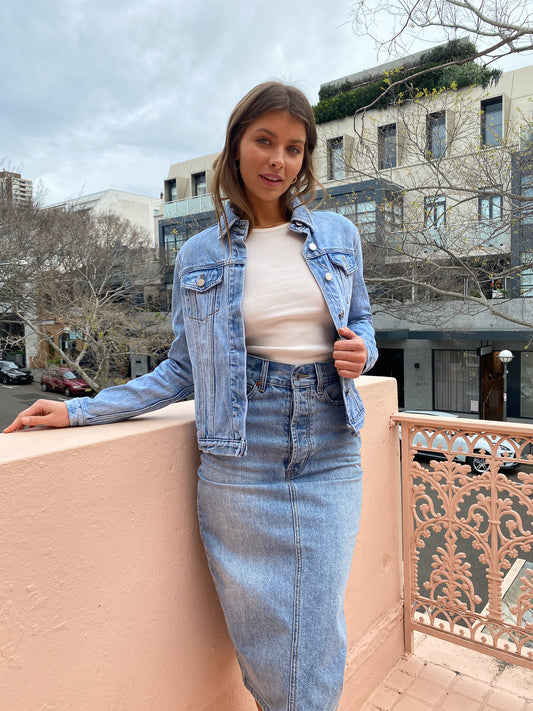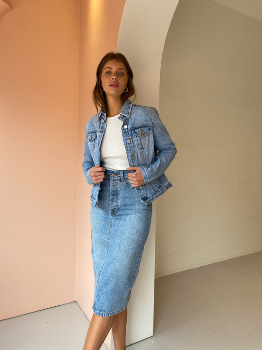 Coco Styling Tip: We love a double denim look! Style back with the Camilla and Marc Penelope Skirt