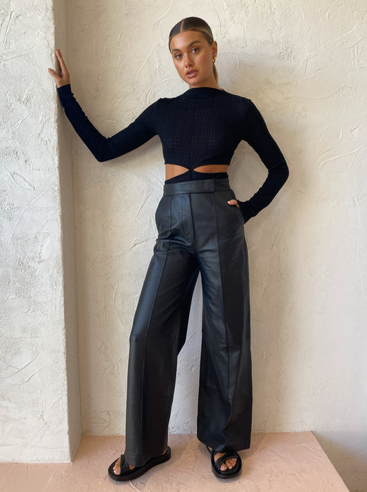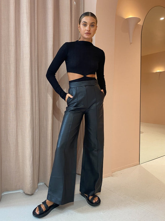 Amplify Coco styling with the irresistible Jean Leather Pant in Black from CAMILLA AND MARC.