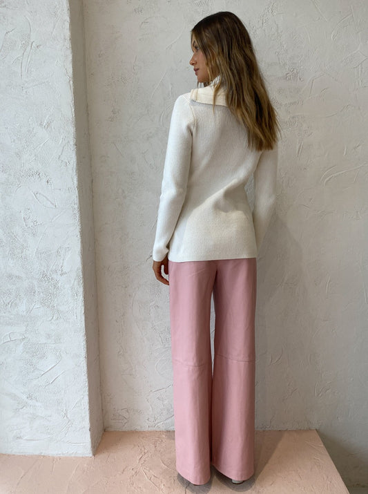 - High waisted wide leg trouser made in a soft Nappa leather