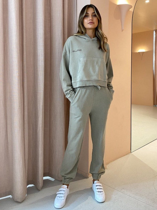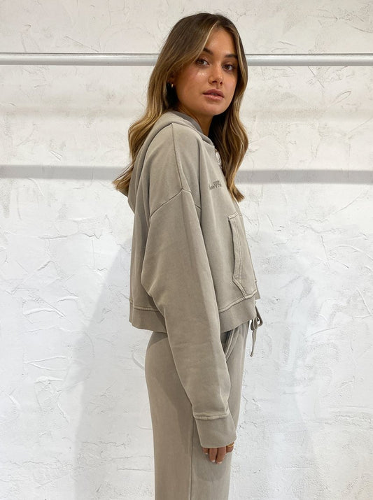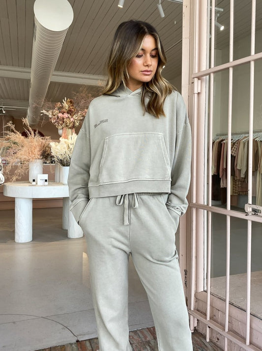 Your wear on repeat athleisure is getting a luxe update with the Jordan Logo Hoodie in Pebble from Camilla and Marc.