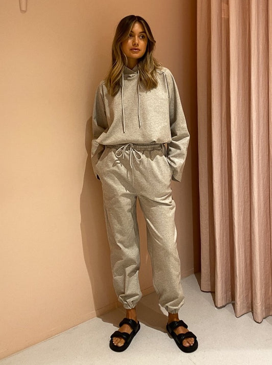 Coco Styling Tip: Game, Set, Match with the Camilla and Marc Limia High Waisted Pant in Oat Marle and the Camilla and Marc Fussbett Sandal in Black for the ultimate tonal worn-on-rotation look.