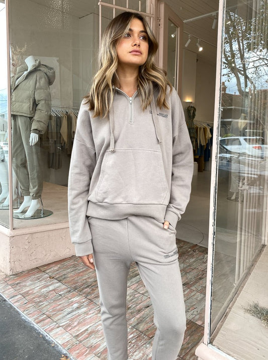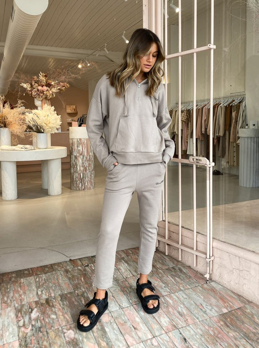 The Camilla and Marc Logan 2.0 Track Pant in Pebble are a luxe athleisure style for trans-seasonal comfort.