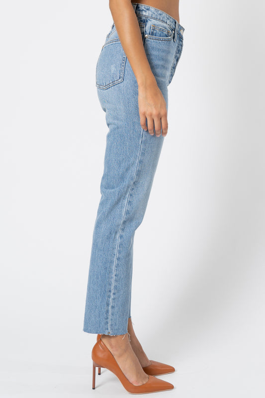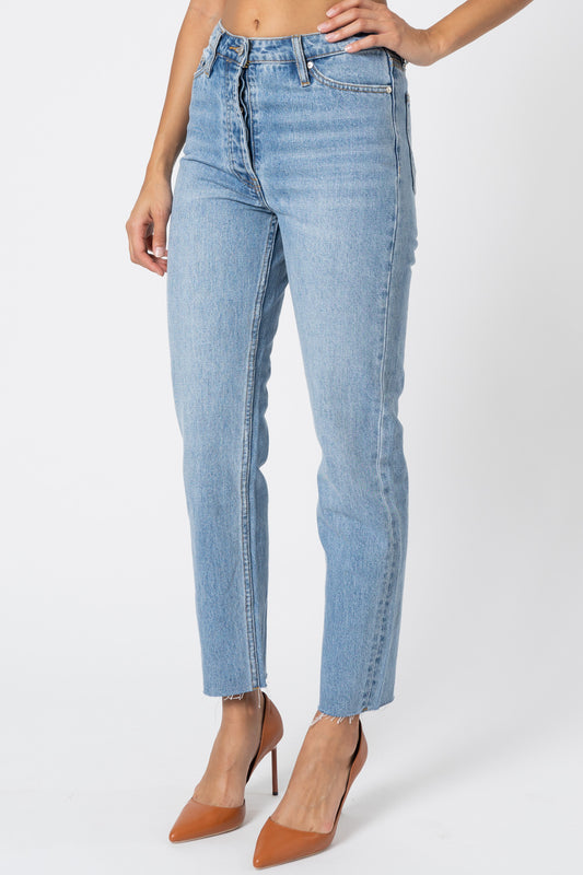 The Camilla and Marc Margot Cropped Straight Leg Jean in Bleached Indigo  by Camilla and Marc is a slim fitting cropped straight leg jean with a worn in look.