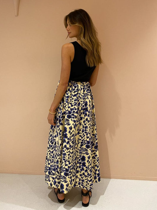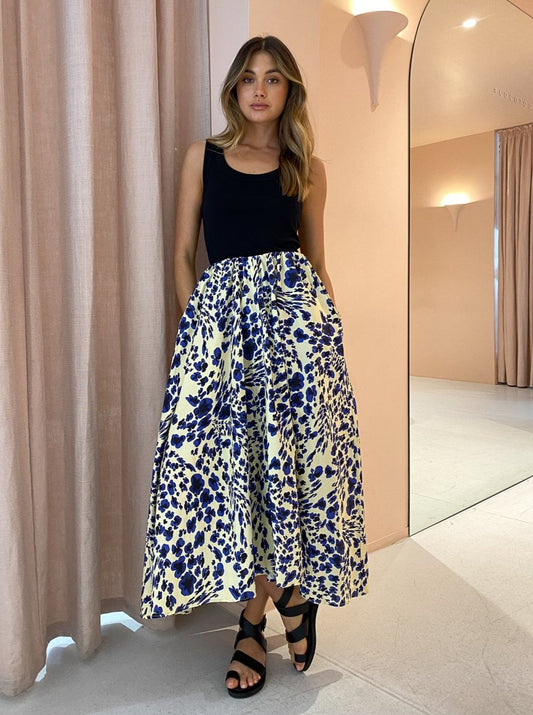 The Nadine Printed Skirt from Camilla and Marc will infuse your Coco closet with soft peachy hues and dark navy blues for endless day to night occasions.