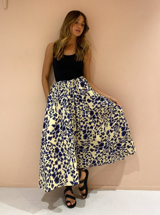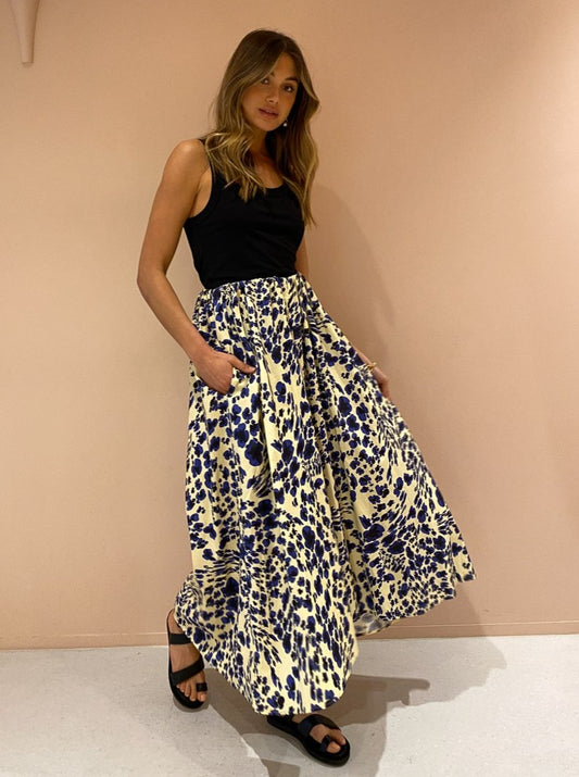 Crafted from a crisp cotton fabrication in a luxurious statement print, the Nadine skirt is designed to sit comfortably and high on the waist with a thick elasticated waistband.