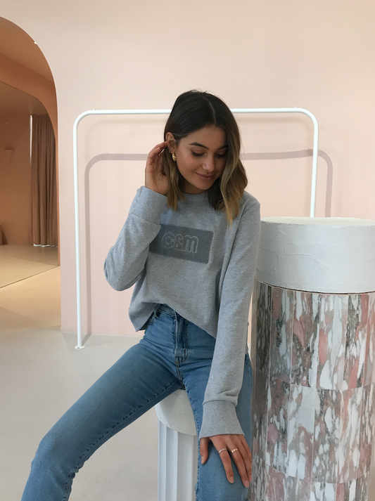 This everyday basic is a classic crew sweater with new seasonal logo and is slightly cropped.