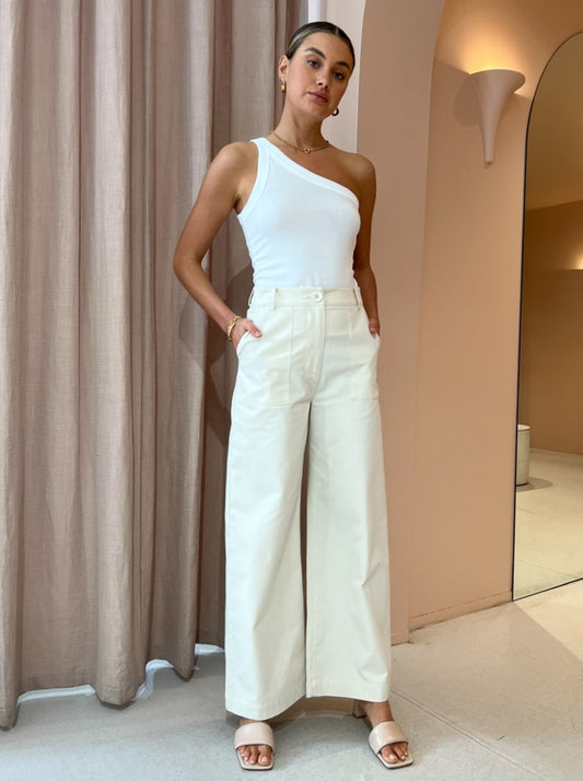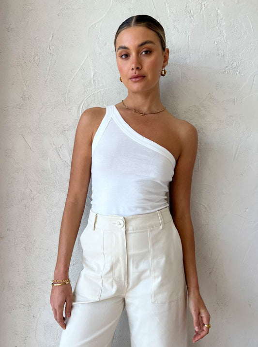 CAMILLA AND MARC reimagine a staple wardrobe hero with the Park One Shoulder Tank in Soft White.