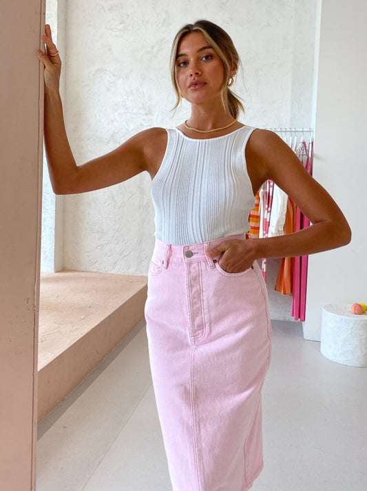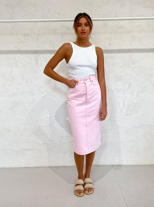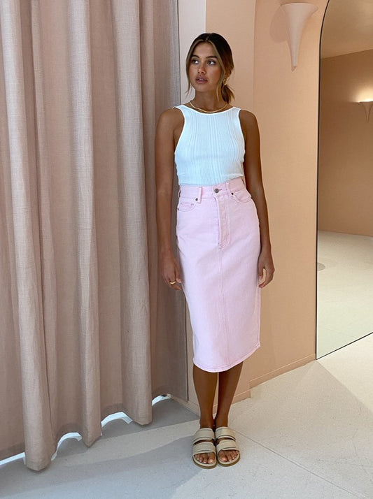 The Camilla and Marc Penelope Midi Skirt in Ice Pink is an easy way to inject come Coco colour into your wardrobe.