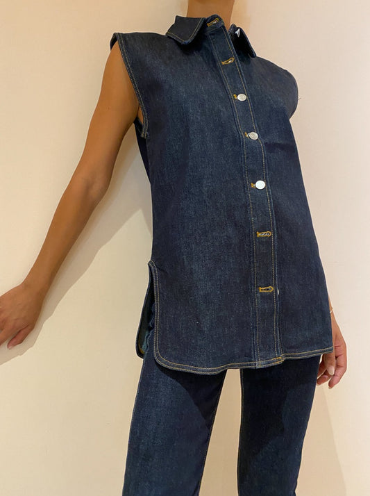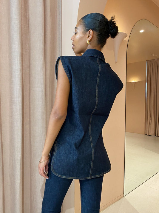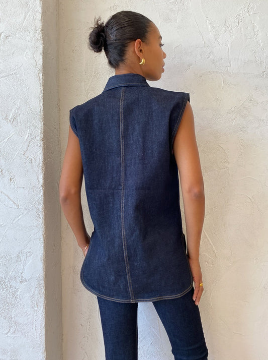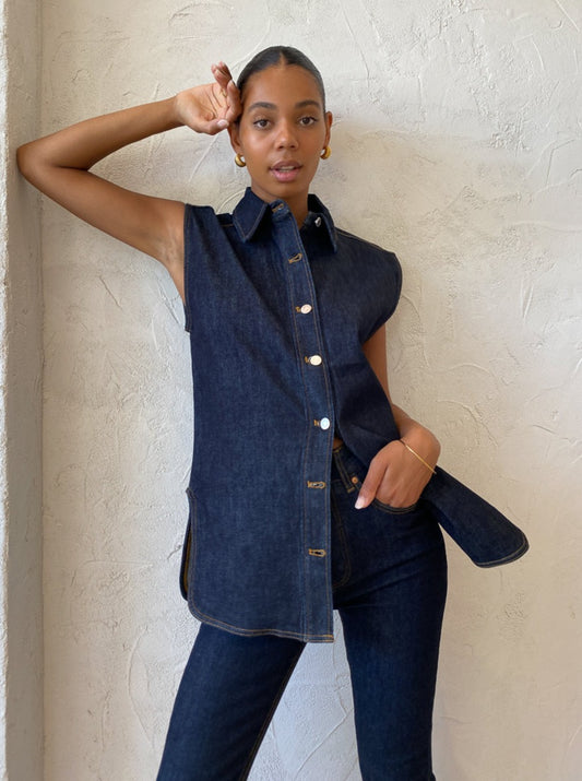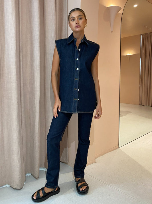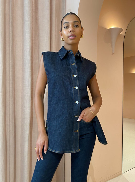 The Reina Vest in Raw Indigo by CAMILLA AND MARC is a refresh on hero shirting that no Coco wardrobe should be without.