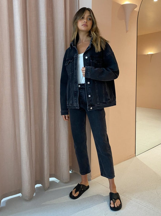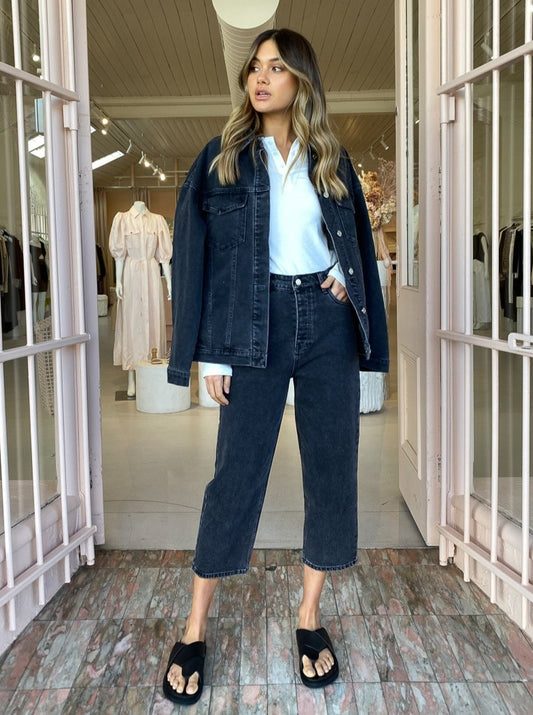 Coco Styling Tip: Complete the look with the Camilla and Marc Lola Cropped Jean in Mottled Charcoal, the Camilla and Marc Light Weight Park Tank in White and finish with the Alias Mae Soho Sandals in Black for elevated everyday denim styling.