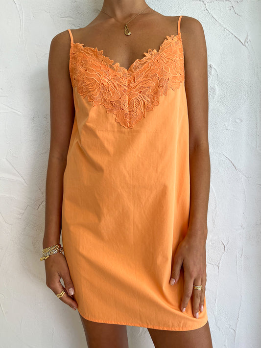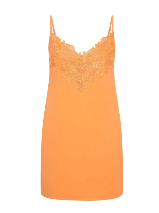 Designed from a breezy cotton fabrication, this relaxed straight-line silhouette finishes just about the mid-thigh that features adjustable straps and a soft V-neckline with delicate lace trim.