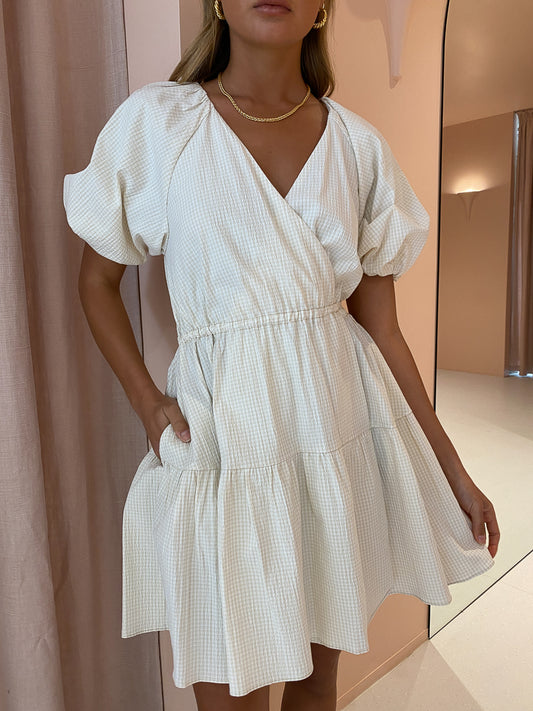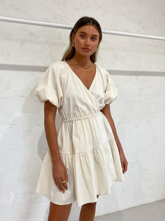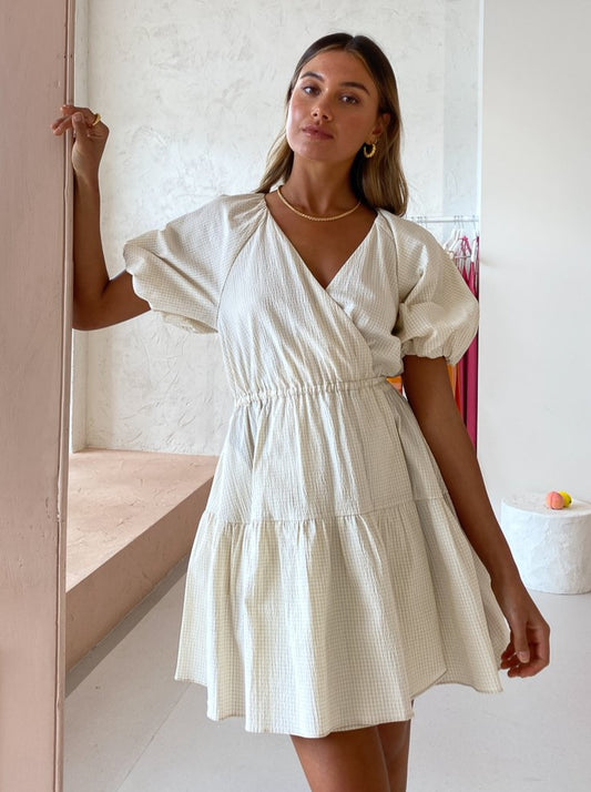 The Camilla and Marc Vega Check Mini Wrap Dress in Ecru/Ivory Check will be a favourite in your Coco wardrobe.