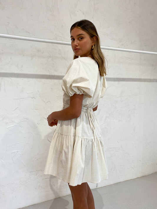 Camilla and Marc Vega Check Mini Wrap Dress in Ecru/Ivory Check
