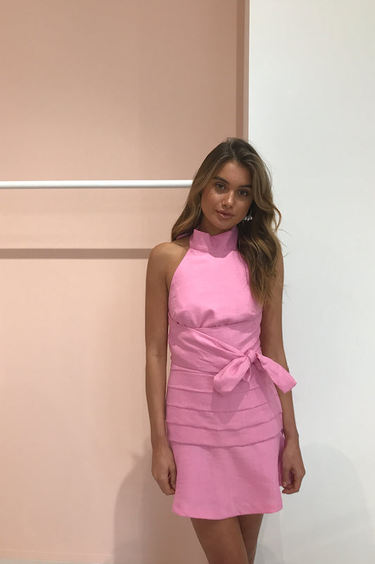 This piece will be a suitcase essential. Easy to wear and care with pure linen fabrication. Balancing high figure hugging waist with a gentle flare that skims the thigh.