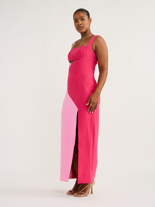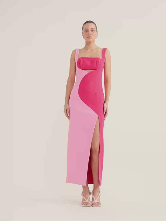 Finished with contrasting pink panels and an invisible zip at the back, this feminine and sultry dress will elevate your date nights and birthday celebration looks.