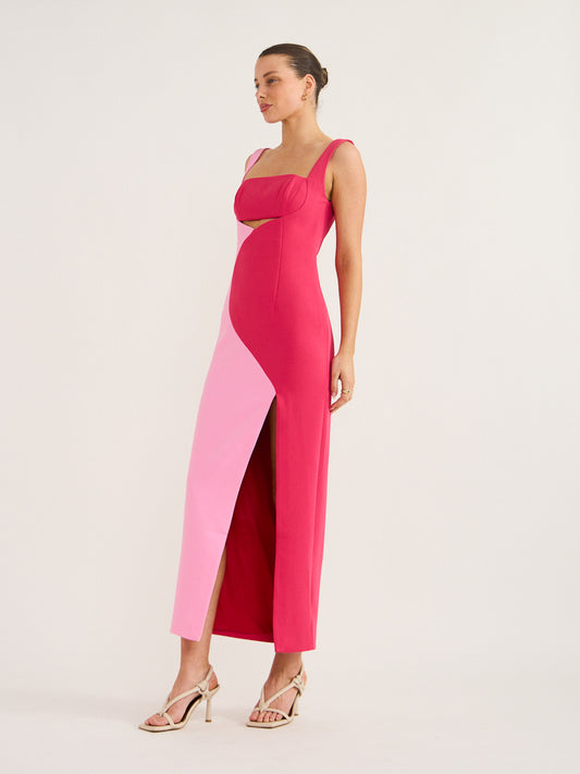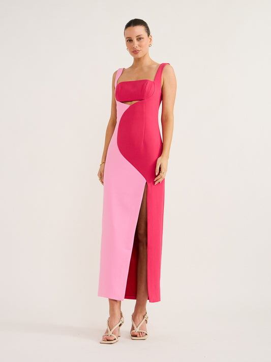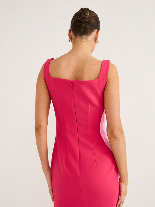 By Johnny Caterina Two-Tone Curve Midi Dress in Pink Multi