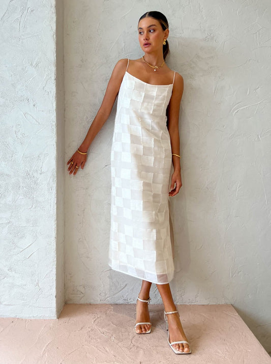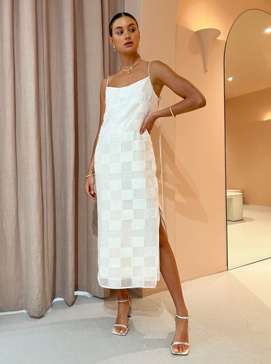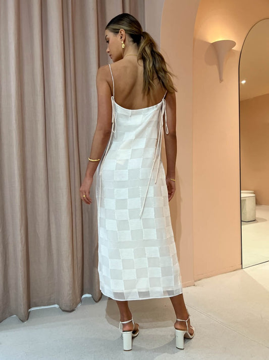 Everyday feels like we're living a fairytale when wearing Clea’s Grace Checkerboard Dress in Chalk Check.
