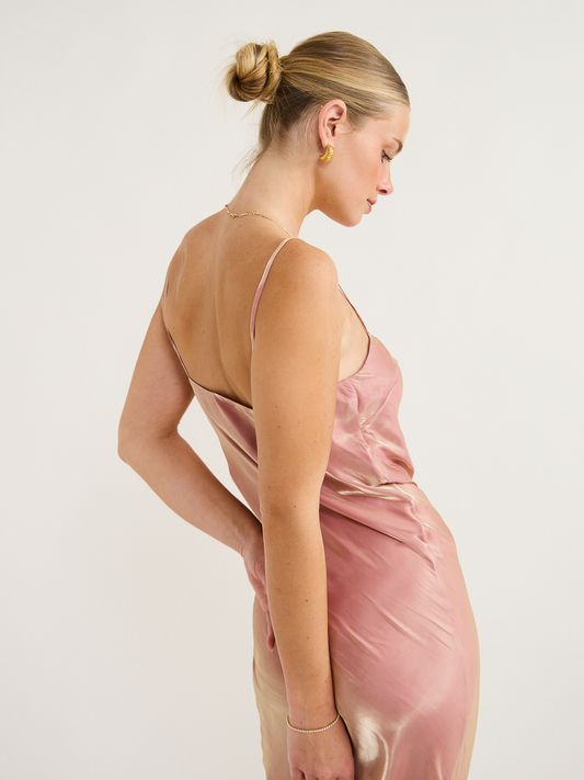 Indulge in feminine elegance with the Constance Dress in Pink Gloss from Friends with Frank