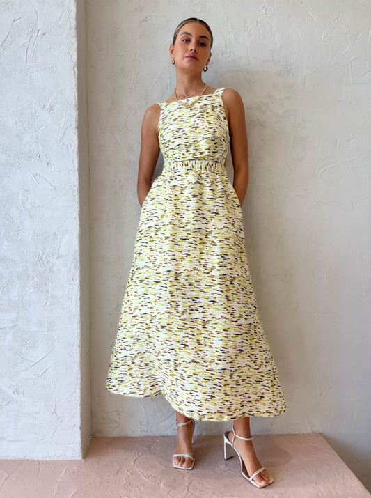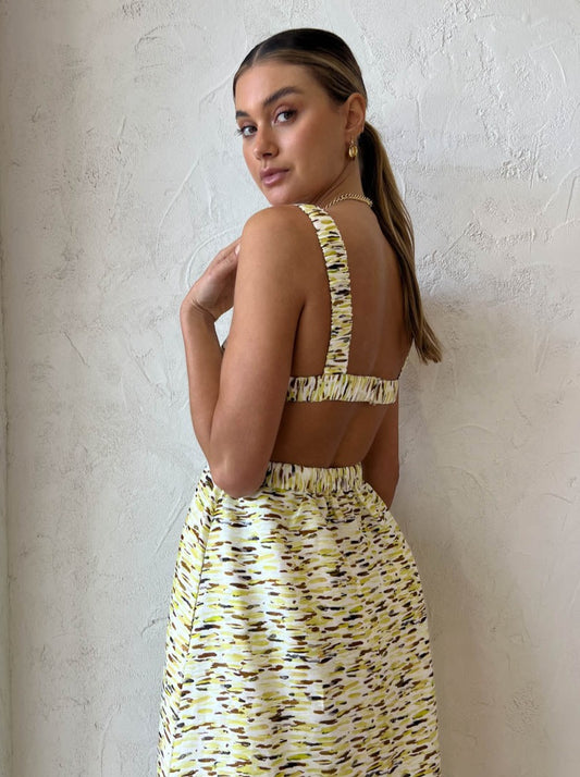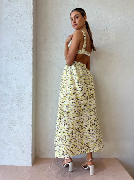 Its abstract Citrus print will have you glowing from long lunches into golden hour cocktails and wedding celebrations.