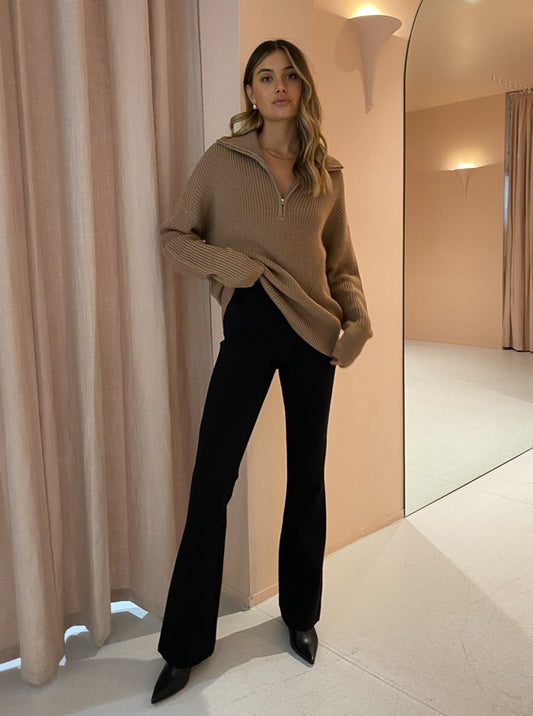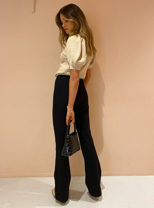 Endlessly comfortable cut from a super stretchy cotton blend fabrication, the Mia Ponte Pant are a high waisted with a wide elasticated waistband designed to fit tight through the leg and flare from the knee.