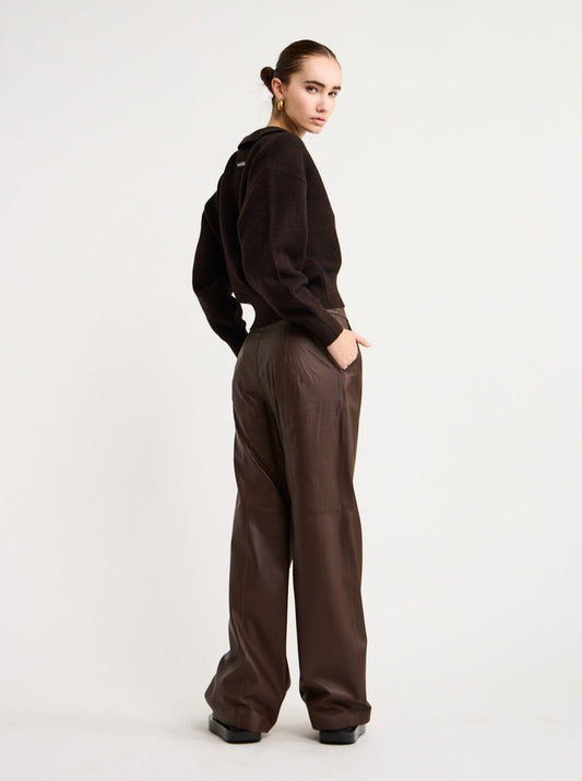 Indulge in ultimate luxury with the Ena Pelly Stanford Leather Pant in Seal Brown.