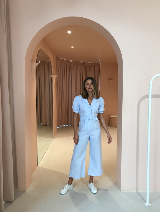 This boilersuit comes in a luxe linen fabrication. Featuring concealed buttons in the front, zip fly and finished with a vintage inspired belt, designed to cinch you in at the waist.