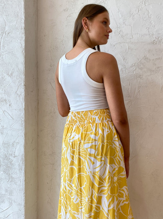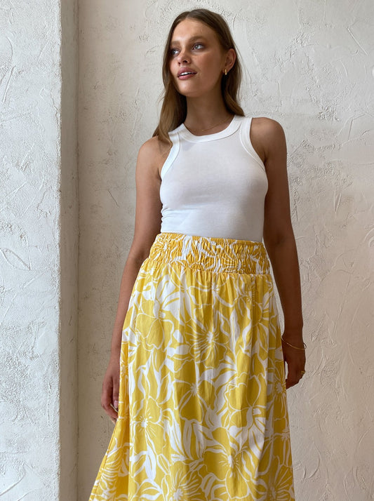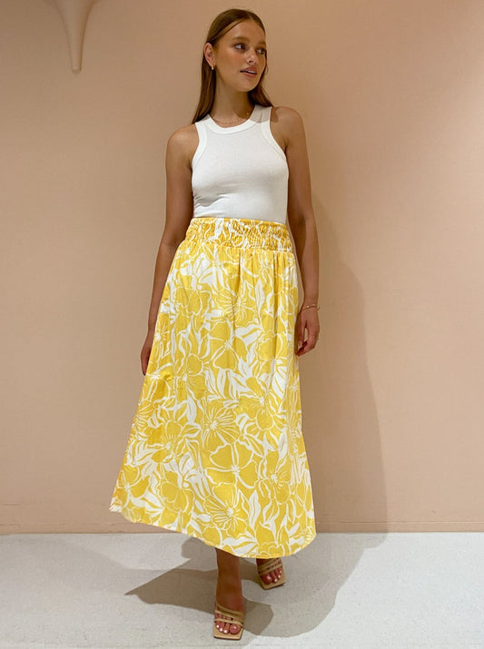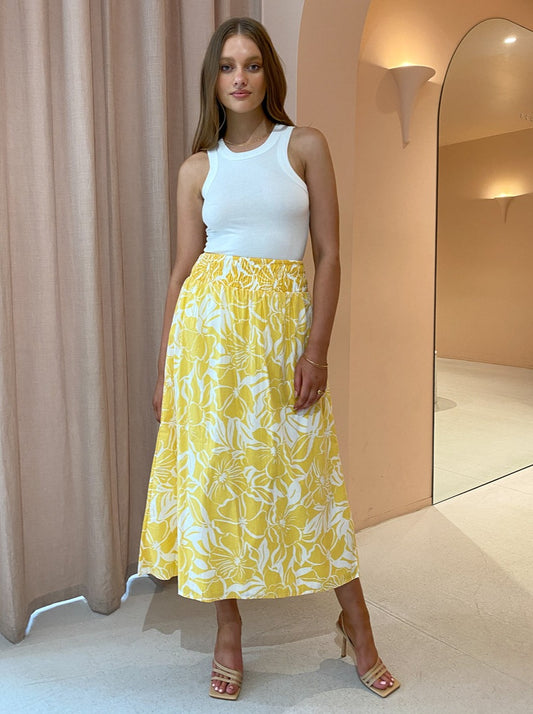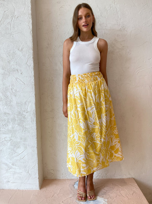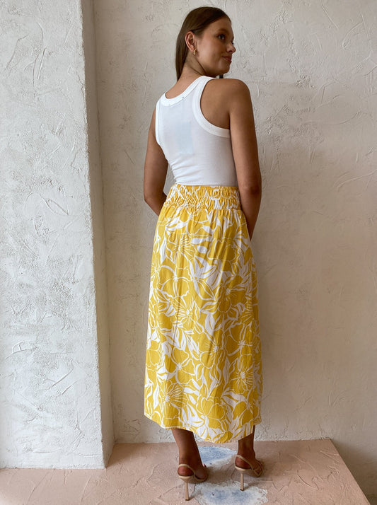 From office days through to your next weekend getaway, the Kiera Skirt's Marigold floral print will brighten your Coco style with sunshine hues.