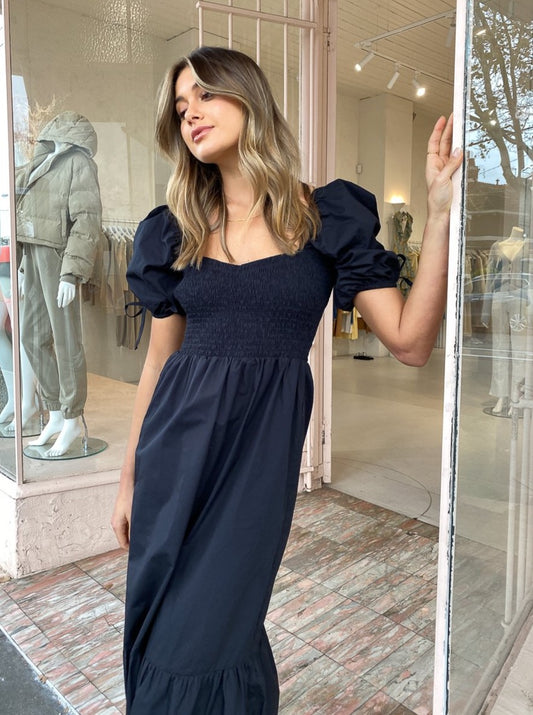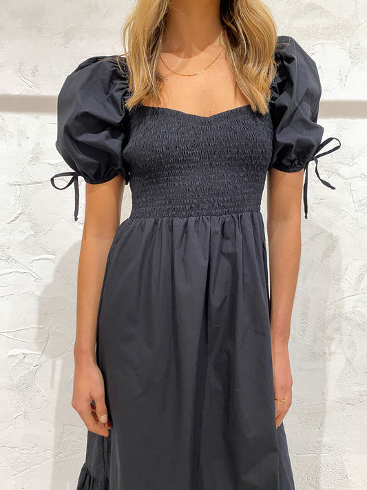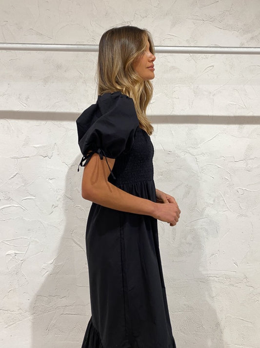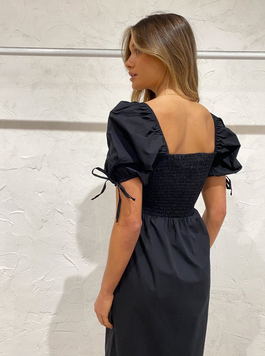 The Lithana Midi Dress in Black from Faithfull The Brand is the easy to wear silhouette that will bring eternal romance to your Coco closet.