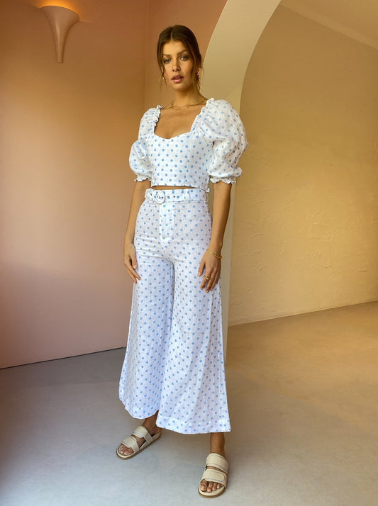 The Faithfull the Brand Rose Wide Leg Pants in Maurice Dot will be a timeless addition to your Coco wardrobe.