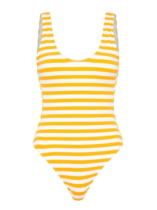 The Solene One Piece in Marigold Stripe by Faithfull The Brand is giving us that summer glow for those luxurious seaside escapes.