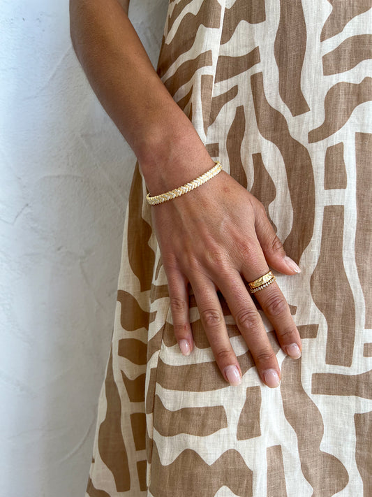 Style the look with the Aloha's Grace Heel in Corn IvoryArms of Eve Rae Chain Necklace, By Charlotte Align Your Soul Ring in Gold, Brie Leon Granada Disc Necklace in Gold, By Charlotte Dream Weaver Cuff in Gold,Amber Sceats Electra Ring Set in Gold.