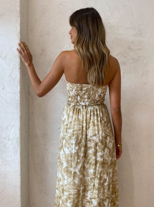 Fitted to the bust with elasticated shirring, it's admired for it's flattering thin halter neck straps that highlight the décolletage for poolside soirees through to date night occasions.