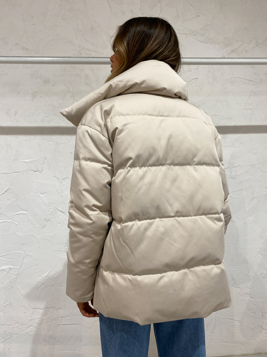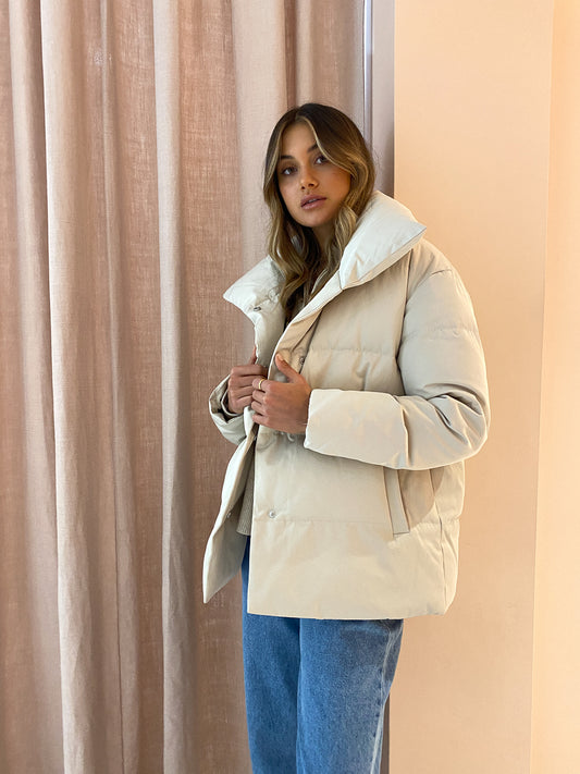 Elevate your luxe winter outerwear in the Astrid Puffer Jacket in Stone from Friends With Frank.