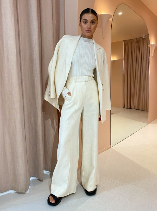 Complete this monochromatic ensemble with the matching Wide Leg Trouser in Ivory, Alias Mae Cassie Heel in Black, Porter Horn Hoops in Gold and Reliquia Felicia Necklace in Gold.