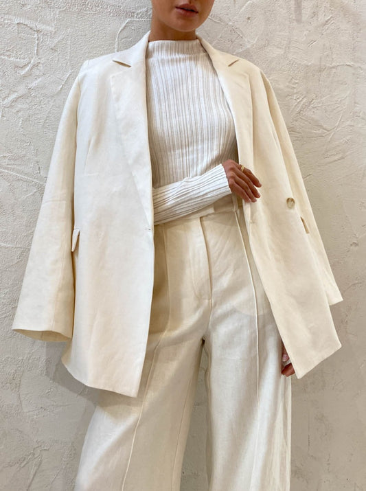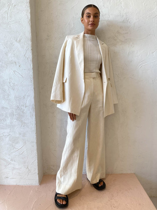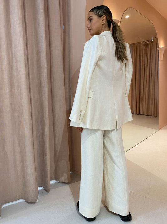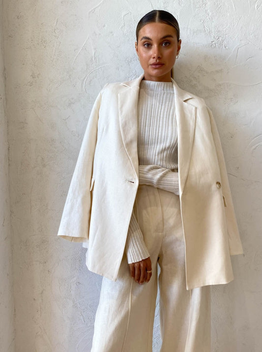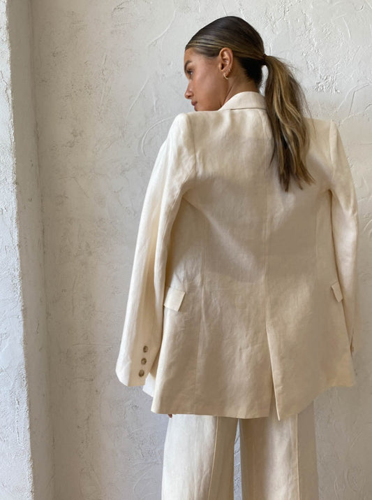 Designed to sit relaxed on the body in a long line length, this boxy cut blazer is crafted from a luxurious heavy weight linen.